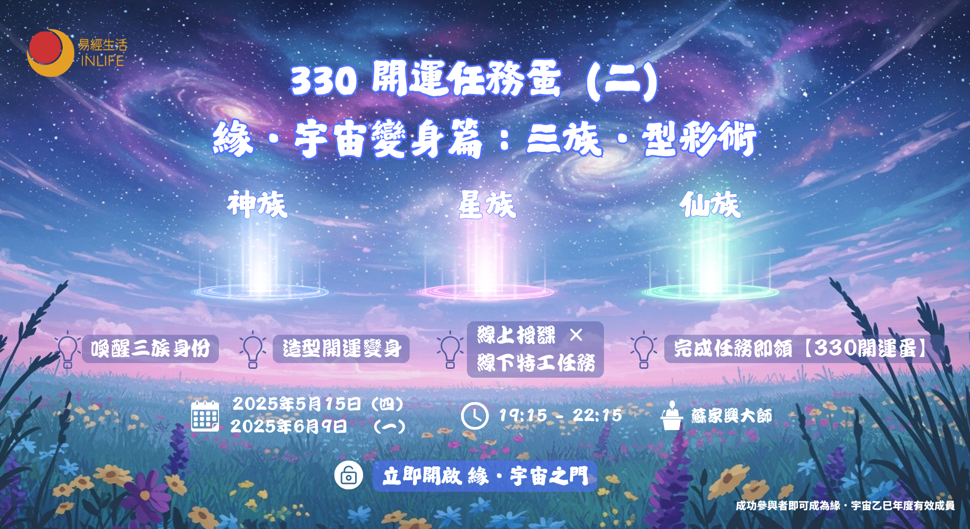成功報名後將成為【緣.宇宙】乙巳年度有效成員,專享日後開運優惠!