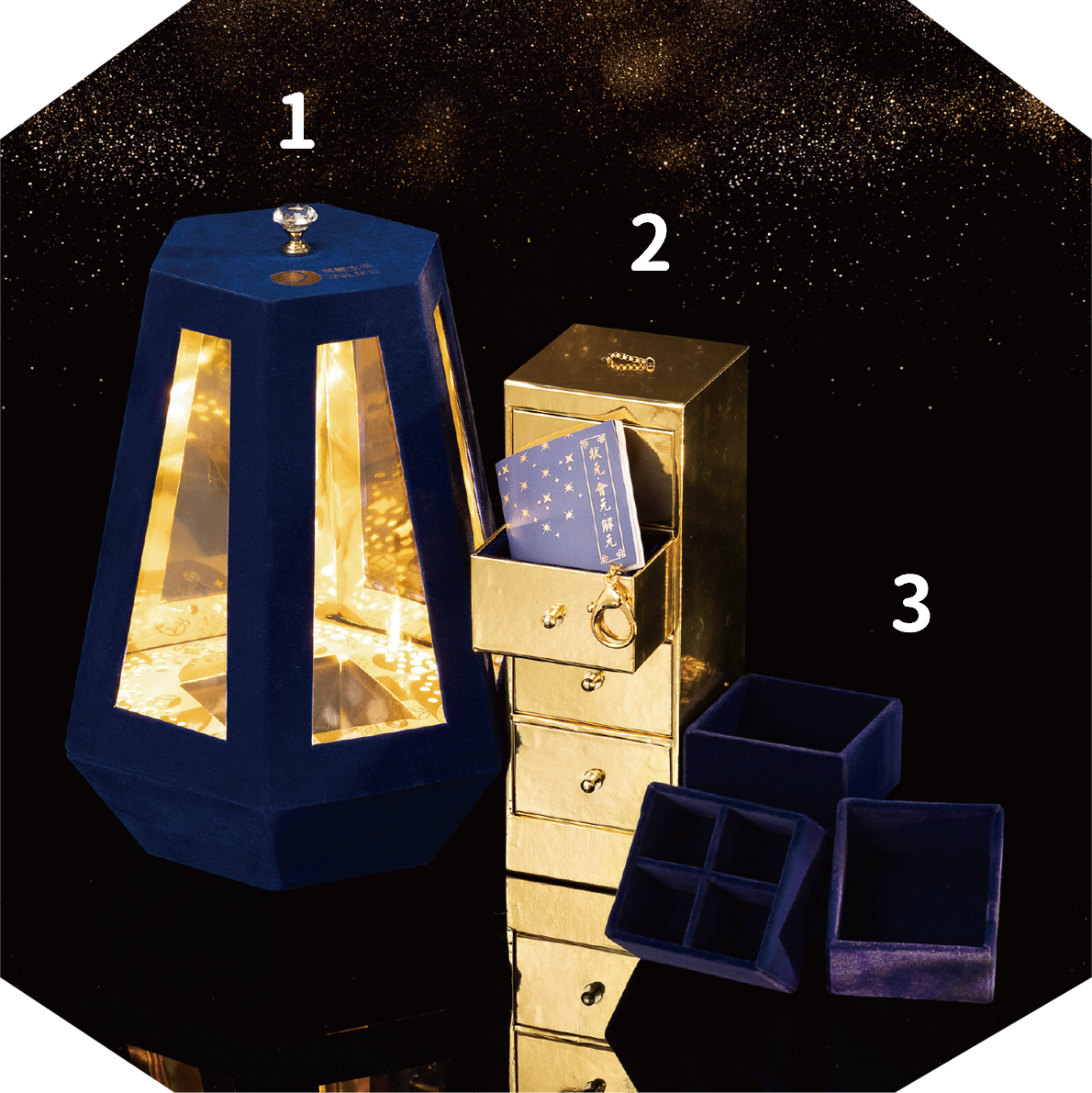 (1)【旺財.珍寶燈】的設計本意是與(2)【三元.金匱】(【文昌.寶塔】)及(3)【運.層隔003】組裝在一起使用,便能造出三者合一,發揮所謂「丁火煉庚金」的開運效果,達至完成【三元之光】的組裝,並能提升文昌、桃花及旺財運及達到極強開運效果。 註. 本產品不設獨立發售。